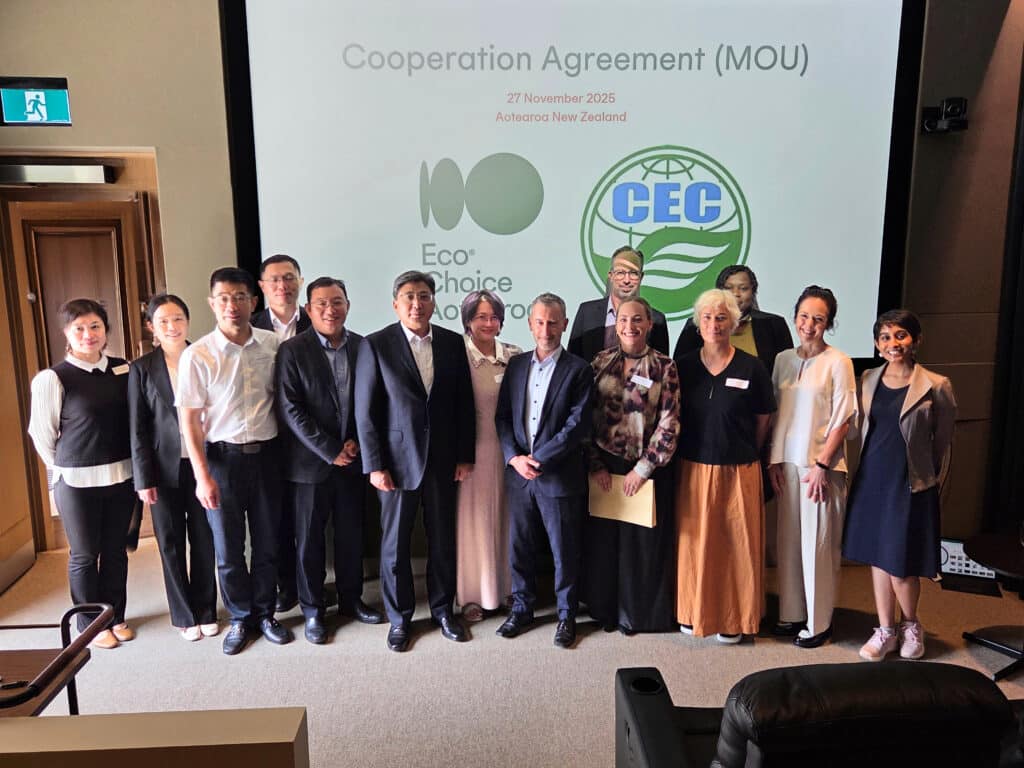 Auckland, 8 December 2025 – Eco Choice Aotearoa, the country’s official ecolabel, has signed a Memorandum of Understanding (MoU) with China’s national ecolabelling body, China Environmental United Certification Centre (CEC), to promote ecolabelling and encourage sustainable trade.